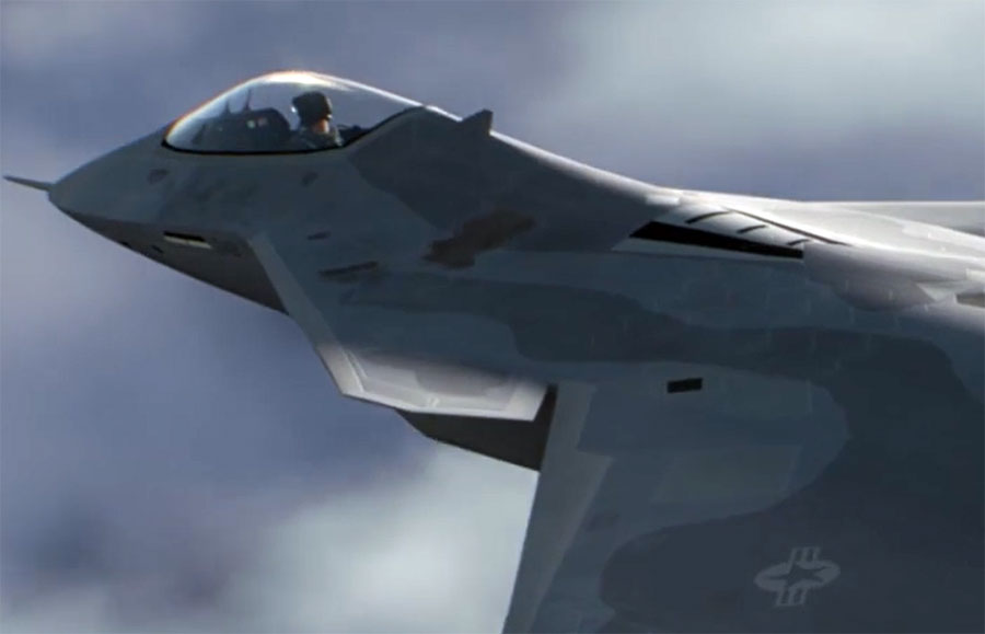 動画内で公開されたコンセプト機は、双発・単座・無尾翼機で、カナード(前翼)を採用していることがわかります。双発エンジンのノズル部分はF-22のような形状で、2次元推力偏向ノズルを備えた機体であることが示唆されています。