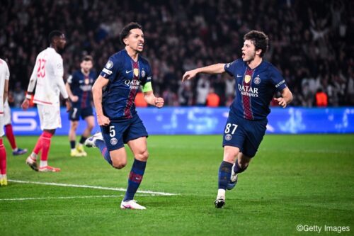 後半に入り58分、クリバリがアクラフ・ハキミとの接触でこの日2枚目のイエローカードを提示され、モナコは数的不利での戦いを余儀なくされることに。すると、PSGがこのプレーで得たFKから同点に追いつく。リスタートからパスを受けたデジレ・ドゥエが右サイドを突破すると、中央へのグラウンダーのクロスをマルキーニョスが押し込み、2戦合計で再びリードを奪った。