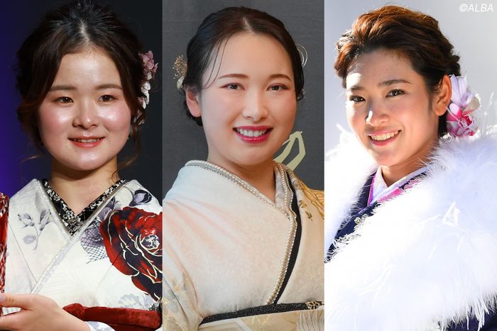 普段はゴルフウェアなだけに、祝い事や式典の席などで見かけると、一際目を引く振袖姿。そこで「振袖が似合う女子プロは誰か」、雑誌『ALBA』の読者にアンケートを実施。栄えある1位に選ばれたのは、和服が似合うというコメントが多く寄せられた小祝さくらだ。