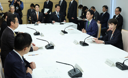 〔写真説明〕人口戦略本部であいさつする高市早苗首相(右端)=2025年11月、首相官邸