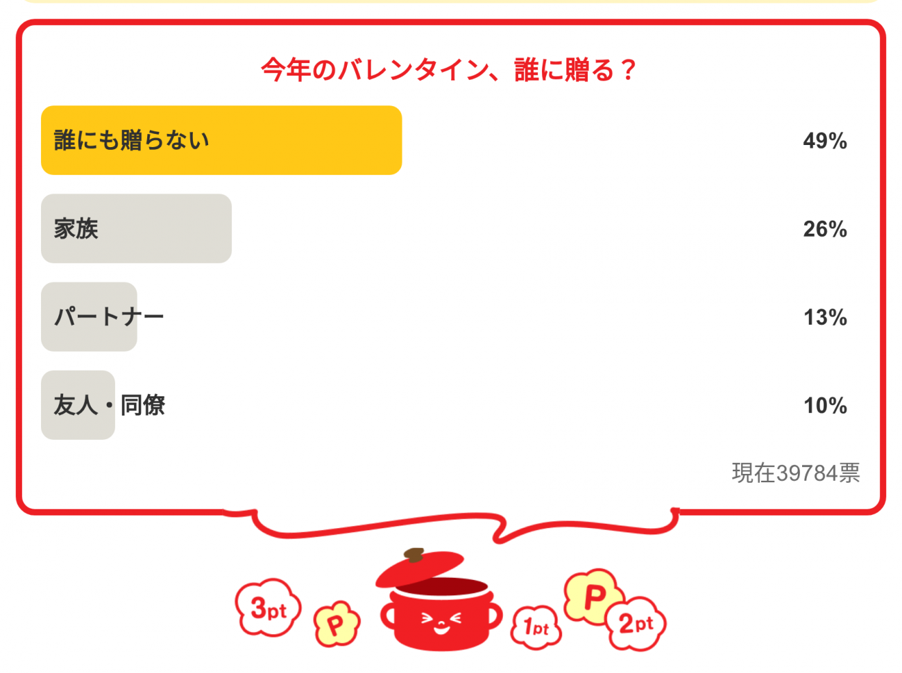 ・「今年のバレンタイン、誰に贈る?」の結果は…
