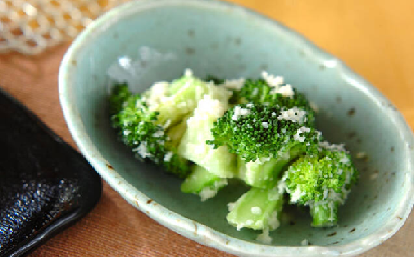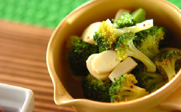 1、ブロッコリーは小房に分け、耐熱容器に入れてラップをし、電子レンジで2分加熱する。電子レンジは600Wを使用しています。