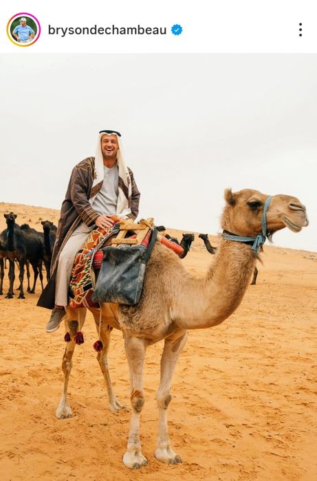ブライソン・デシャンボー(米国)が自身のインスタグラムを更新。サウジアラビアの砂漠地帯でラクダたちと楽しく過ごした時間を写真や動画で投稿した。
