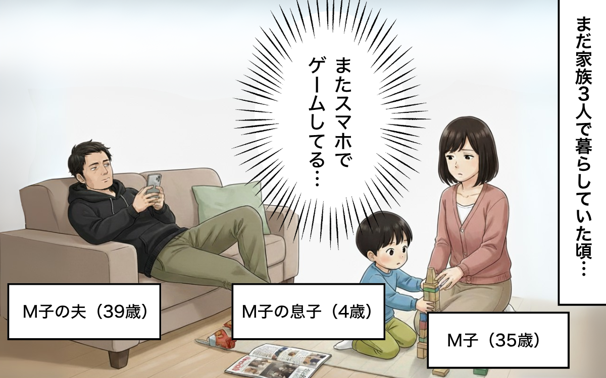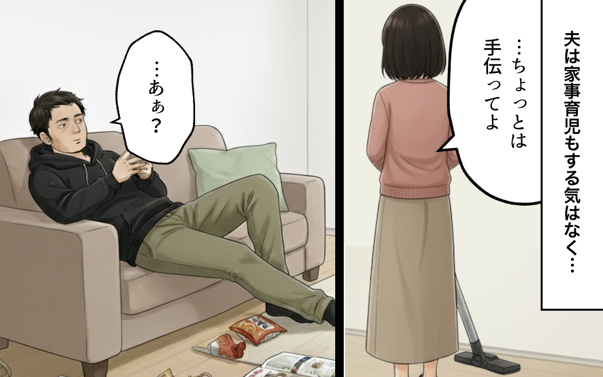 一方で夫は、仕事から帰るとソファに腰を下ろし、スマホゲームを始めました。