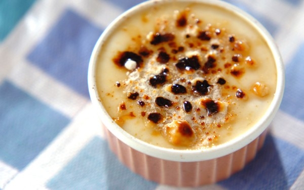 豆腐、クリームチーズ、メープルシロップで作る、クレームブリュレのヘルシー版です。豆腐はよく水切りし、裏ごしすることでなめらかな仕上がりに。表面をキャラメリゼすると、一気に高級感がUPしますね。