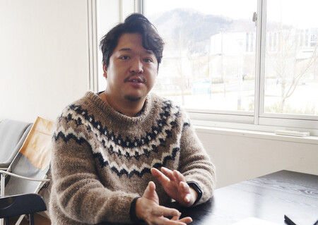 〔写真説明〕インタビューに答える後藤大輝さん=2月7日、宮城県女川町