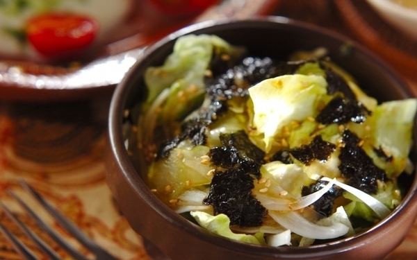 淡白になりがちな新玉ネギに、焼き海苔の香ばしさをプラスしたアイデアレシピ。セロリの爽やかな香りがアクセントになり、くせになる味わいです。歯応えのある野菜を組み合わせているので、お肉がなくても食べ応え十分。体の中から整う一品です。