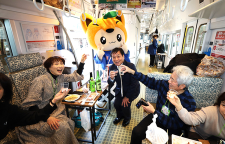 同市は古くから日本酒造りが盛んで国内外の評価が高い。ツアーではJR佐賀駅を出発して、田園風景の中を進みながら鹿島の日本酒で乾杯し、「芳醇旨口(ほうじゅんうまくち)」が特徴とされる酒を楽しんだ。同市内などの途中駅では、いったん下車。有明海で採れた特産のカキやフルーツでのおもてなしを受けながら、歓迎してくれた沿線の人々との会話が弾み、行程の約5時間はあっという間に過ぎ発着点の佐賀駅に戻った。
