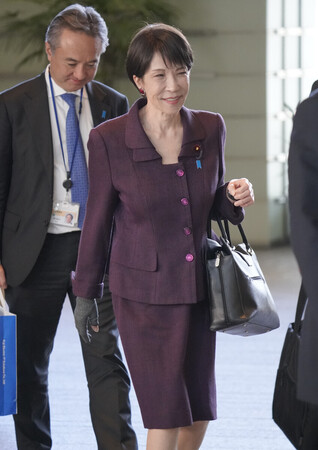 〔写真説明〕首相官邸に入る高市早苗首相=4日午前、東京・永田町