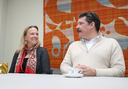 〔写真説明〕在日スウェーデン大使館のヨハンナ・リンドクイスト公使参事官(左)と夫のダビット・グレンさん=2月20日、東京都港区