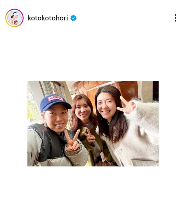 堀琴音が自身のインスタグラムを更新。「久しぶりの桃子さん」と記すと、姉・奈津佳と一緒に上田桃子と再会したことを嬉しそうに投稿した。