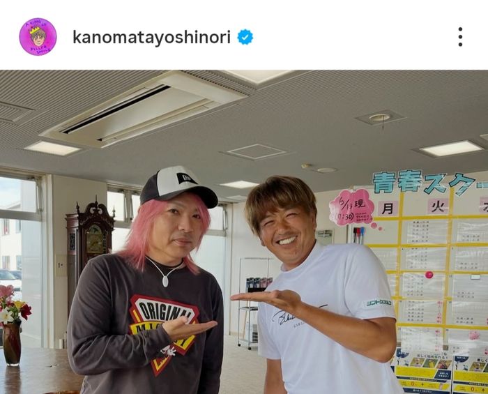 最初に「いつもやさしく笑いながら話してくれた」との第一印象を明かした。そして2ショット写真を公開すると「24年6月この時も高松でライブの前日の移動中に『かのまっちゃんきてるって聞いて』ってわざわざ立ち寄ってくれました」と撮影当時を振り返った。