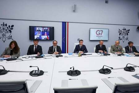 【ワシントン時事】先進7カ国(G7)首脳は11日、中東地域の海上輸送の安全を確保することで連携し、船舶の護衛の可能性を検討することで一致した。また、国際エネルギー機関(IEA)加盟国が過去最大規模の4億バレルの備蓄石油放出を決めたことを歓迎した。議長国フランスが共同声明を公表した。