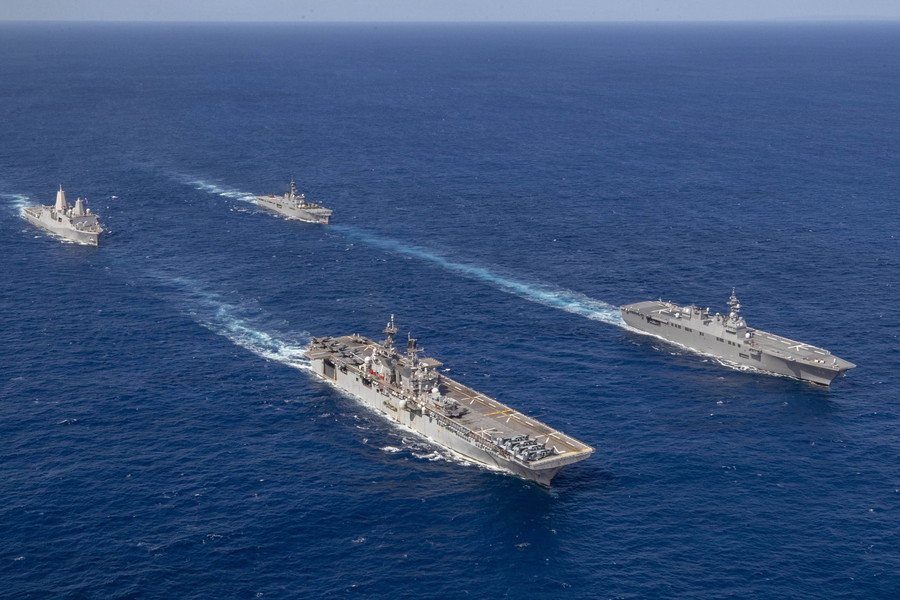 訓練が行われたのは3月1日。アメリカ海軍からは強襲揚陸艦「トリポリ」とドック型輸送揚陸艦「ニューオリンズ」が参加しました。一方の海上自衛隊からは、護衛艦「いせ」と輸送艦「おおすみ」が参加。日米を代表する大型艦4隻が海上でピタリと並走する、圧巻の光景を披露しています。