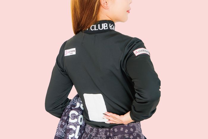 冷えから力んですくみ上がった肩を下げるには、肩周りを温めるのが最適。なおかつ、カイロのわずかな重さが、トップから腕をストンと下ろすのに役立ってくれる。力み知らずのスイングが手に入る。