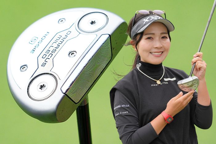 芝の種類だけでなく、刈り高・天候・傾斜や硬さ・風向きなどに合わせて、その時に最適なパターを選び分けてきた女子プロきっての“目利き”の青木瀬令奈。今週の琉球ゴルフ倶楽部のコーライグリーンでは「どんなパターを選ぶのだろう?」と観察すると、やはり見慣れぬ未発表パターを試して対策を講じていた。