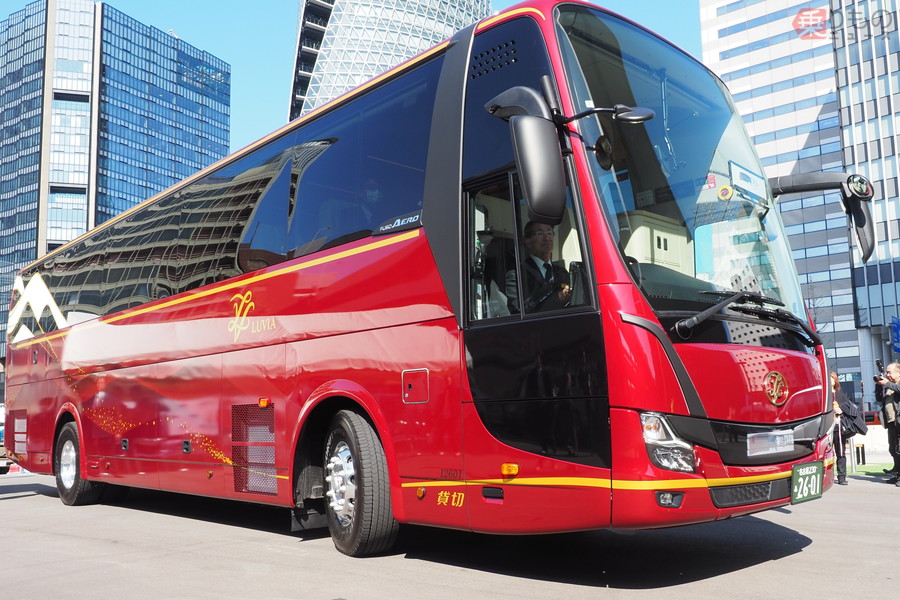 名鉄バスは2026年3月17日、新しいツアーブランド「遊山-yusan-」で使われる専用車両「LUVIA(ルヴィア)」をメディア向けに公開しました。ワインレッドの車体が美しいこのバスについて、担当者に話を聞いてきました。