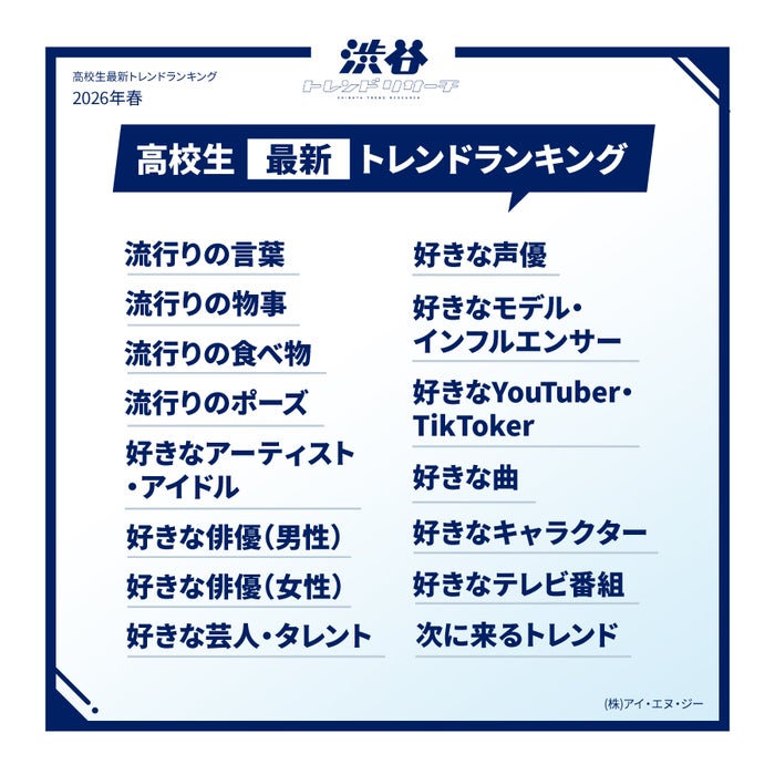 2026年春「高校生最新トレンドランキング」全15項目発表 M!LKが10個ランクイン