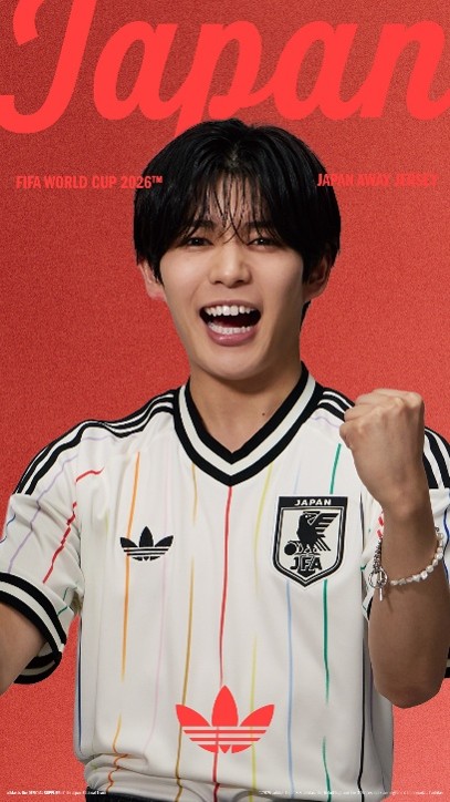 「今回のアウェイユニフォームは、白のユニフォームにカラフルなラインがあり、そこにトレフォイルロゴがあるデザインがすごく新鮮で、初めて見たときに「かわいい!」と思いました。サッカーのユニフォームって、着ると自然と気持ちが上がる特別なアイテムだと思います。スタジアムで応援するときはもちろん、日常のファッションとしても楽しめるデザインなので、是非いろんなスタイルで着て楽しんでほしいです。僕も落ち着いた色のデニムと合わせて楽しみたい!日本代表の試合でも、みんなで一緒に盛り上がりましょう!」