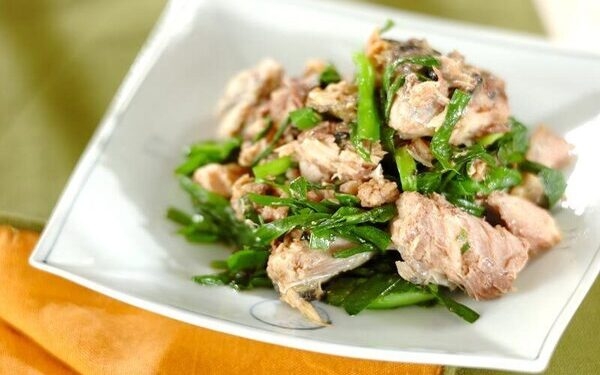 ニラとサバ缶の和え物