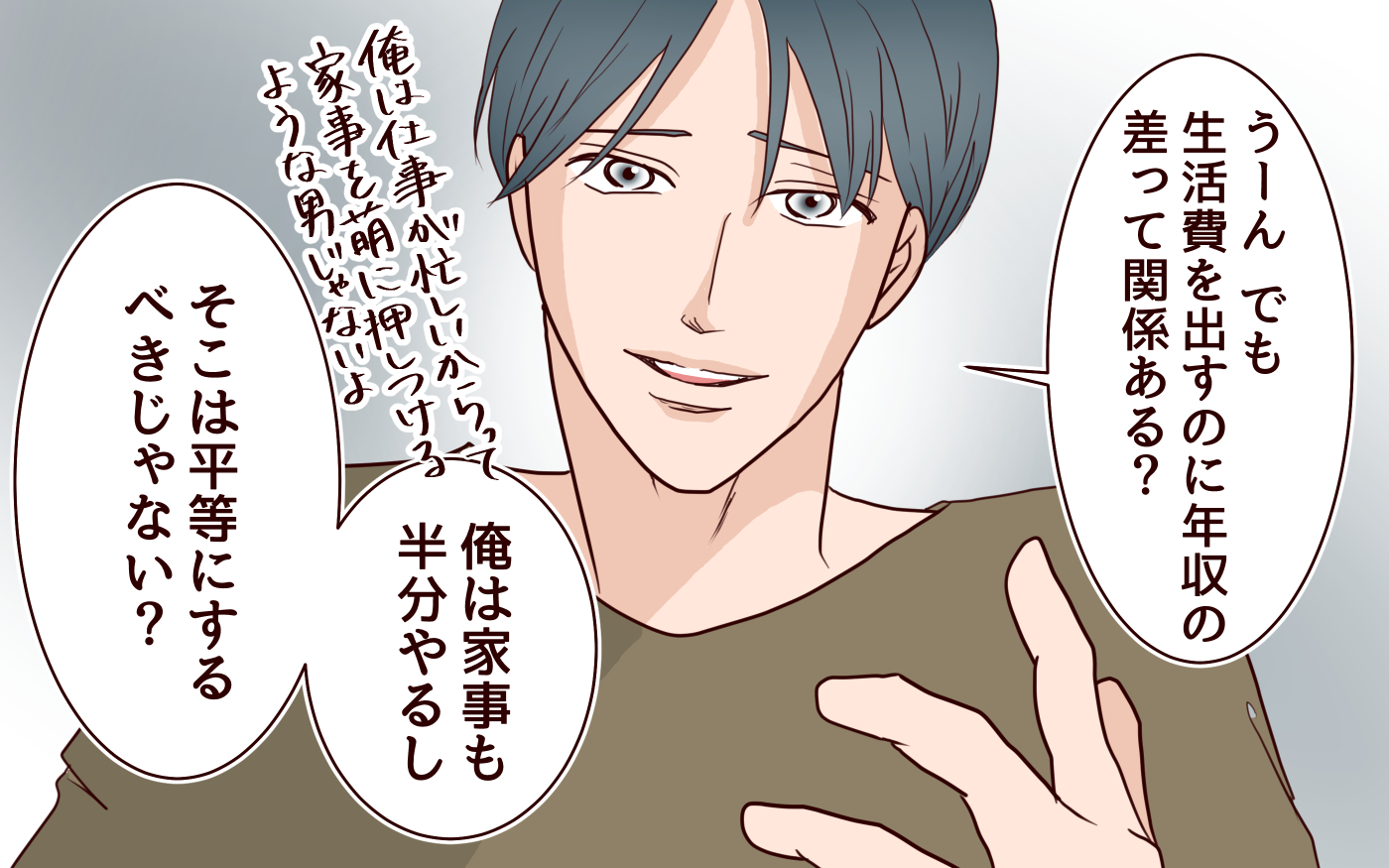 「他人からはいい夫に見えるだろうけど実際は…」妻しか知らない夫の本性とは…育休中も割り勘を強要!? 2026年3月22日 17:30 ウーマンエキサイト 中 大 「5類型」撤廃へ 防衛産業に注目 そう、本当の問題は産休中の生活費! さすがに産休中は「月20万円振り込め」なんて言わないよね…? と思ったら、言うんです! この夫!! だから「そろそろ子どもがほしい」と言われても、不安しか浮かばなかったのです。 【まんが】割り勘男 関連記事【まんが】割り勘男なにしに来たんだろう…謝罪ではなく嫌味を言いに来た?【夫にもう1つの家庭が? Vol.35】初めてのケースでベテラン教師も困惑…今後の方針は?【私はモンペじゃありません Vol.32】突撃訪問の翌日 態度が一変?戸惑うシンママが下した最後の決断【開示請求待ったなし Vol.33】「なんだ、動けてるじゃん?」帰宅するなり夫に言われモヤモヤ…そんなこと言う人だったの!?