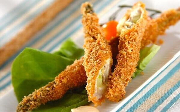 肉巻きをフライにする、ごちそう感たっぷりのアレンジです。サクサクの衣とアスパラガスの歯ごたえがくせになります。衣にカレー粉を混ぜると、スパイシーで食欲をそそる香りに。揚げたてを食卓に出せば、家族から歓声が上がること間違いなしです。