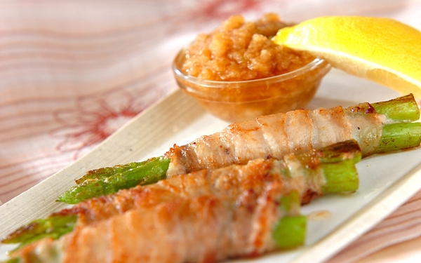 豚バラ肉のジューシーな脂がアスパラガスに染み渡る、シンプルながら贅沢な味わい。おろしポン酢にピリッとユズコショウを添えれば、後味さっぱり。夕飯のメインにはもちろん、ビールのおつまみとしても最高です。