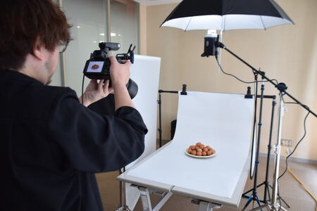 群馬県榛東村役場で、同村のふるさと納税返礼品の撮影会が行われた。25品の返礼品がそろえられ、プロのカメラマンが次々とシャッターを切った。写真は、ふるさと納税ポータルサイト「さとふる」に掲載される。