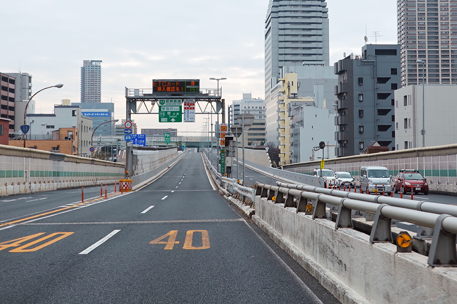 その実態は、大阪と神戸を結ぶ国道43号の大阪市内における有料区間のような位置づけです。しかし、安治川出口から先も国道43号の高架部は兵庫県境付近まで続くので、「有料・無料区間の区分けがよく分からない……」とは同乗者の弁。