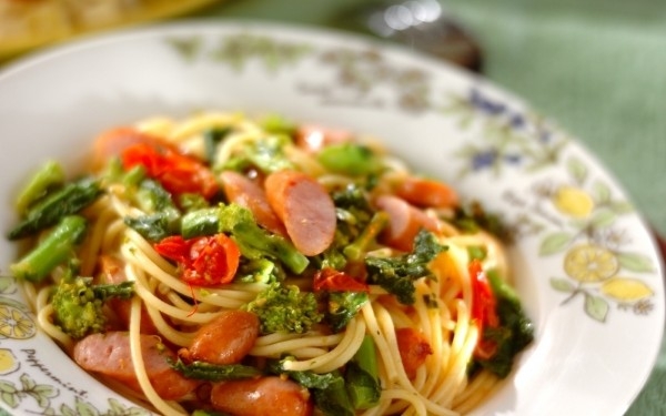 【人気NO.2】ガツンと旨い。ソーセージと菜の花のガーリックパスタ
