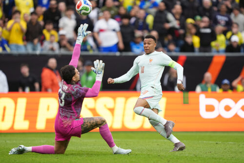 W杯開催地のアメリカ開催となった一戦。立ち上がりからフランスがボールを握り、オリーズを起点に崩しを試みる。対するブラジルはロングカウンターの形で一気に相手ボックス付近まで運び、ハフィーニャやヴィニシウスがフィニッシュへつなげていく。