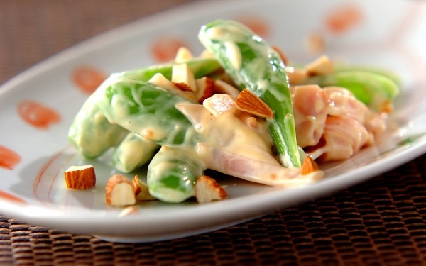 スナップエンドウとハムのみそマヨ和え