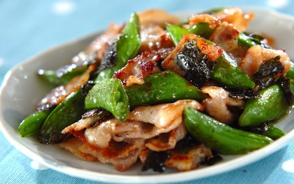 スナップエンドウと豚肉のり炒め