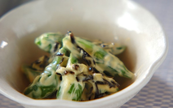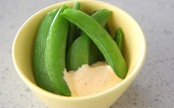 スナップエンドウの塩昆布マヨ和え