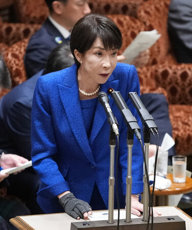 〔写真説明〕参院予算委員会で答弁する高市早苗首相=25日、国会内