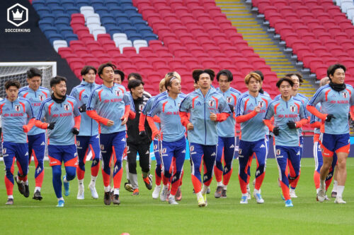 冒頭15分のみのメディア公開となり、選手たちはランニングやストレッチ、ボール回しで調整した。イングランドサッカーの“聖地”として知られるウェンブリー・スタジアムは、9万人を収容できる巨大なスタジアム。選手たちはピッチに姿を現すと、スタジアムを見渡していた。なお、明日のチケットは完売となっており、満員のスタジアムでプレーすることになる。