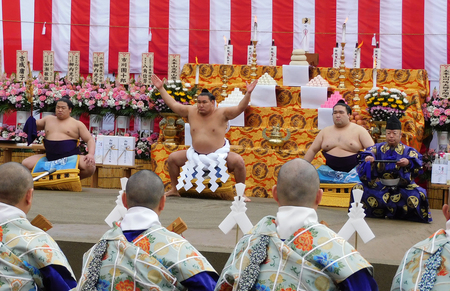 同寺は江戸時代から大相撲との縁が深く、毎年恒例の節分会では力士による豆まきが風物詩となっている。この日は2027年に完成する信徒会館の予定地を手数入りで「地固め」してもらったという。