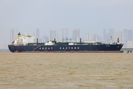 〔写真説明〕ホルムズ海峡経由でインド西部ムンバイの港に到着した同国船籍の液化石油ガス(LPG)船=1日(EPA時事)