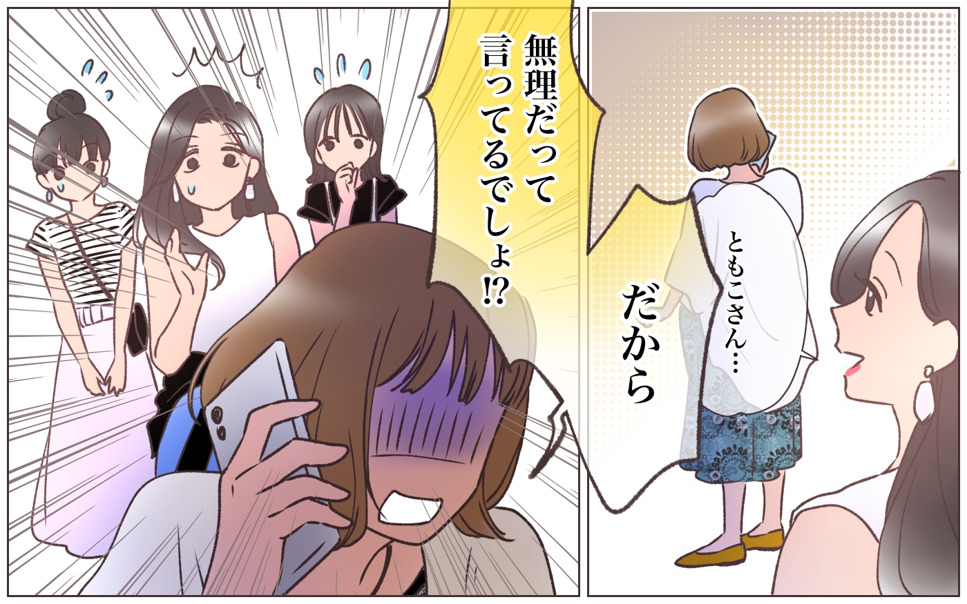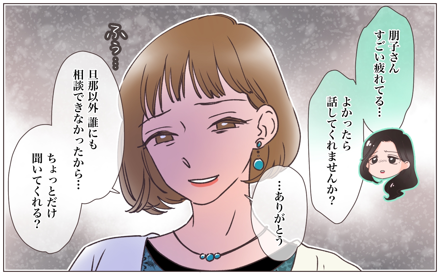 親友に必死で呼びかける朋子さんの隣で、ニヤリと笑う男の姿…。見ているだけで背筋が寒くなりますよね。