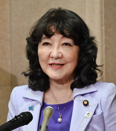 〔写真説明〕2026年度予算の成立を受け、記者団の取材に応じる片山さつき財務相=7日午後、財務省