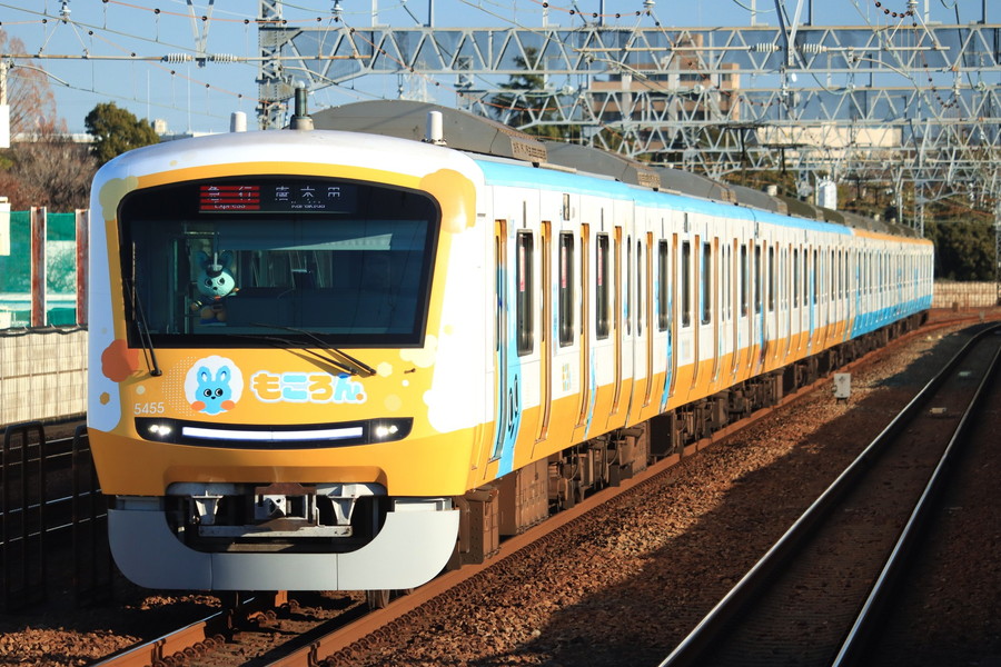 「もころん号」は、5000形通勤電車に子育て応援マスコット「もころん」のラッピングを施した車両です。