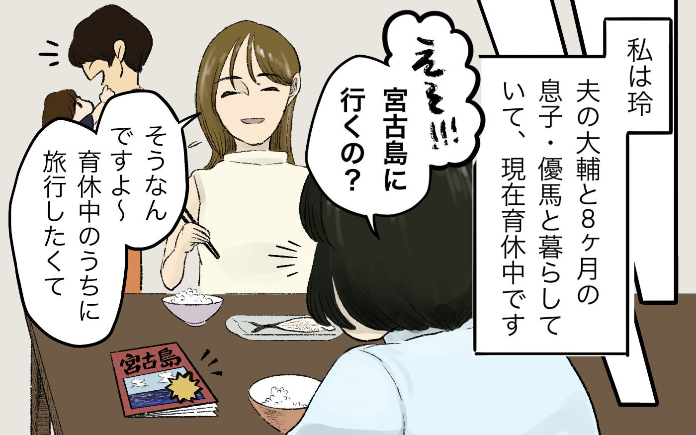 育休中の玲さんが楽しみにしていた、夫と子どもとの3人旅行。それがまさかの義母同行になってしまうとは…。