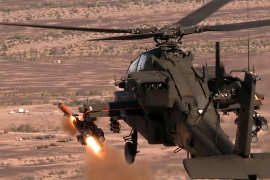 この実験は、アリゾナ州にあるアメリカ陸軍ユマ試験場にて実施された演習に際して行われたものです。AH-64Eの機体側面に設けられた兵装搭載スペースに発射装置を搭載して実施されました。