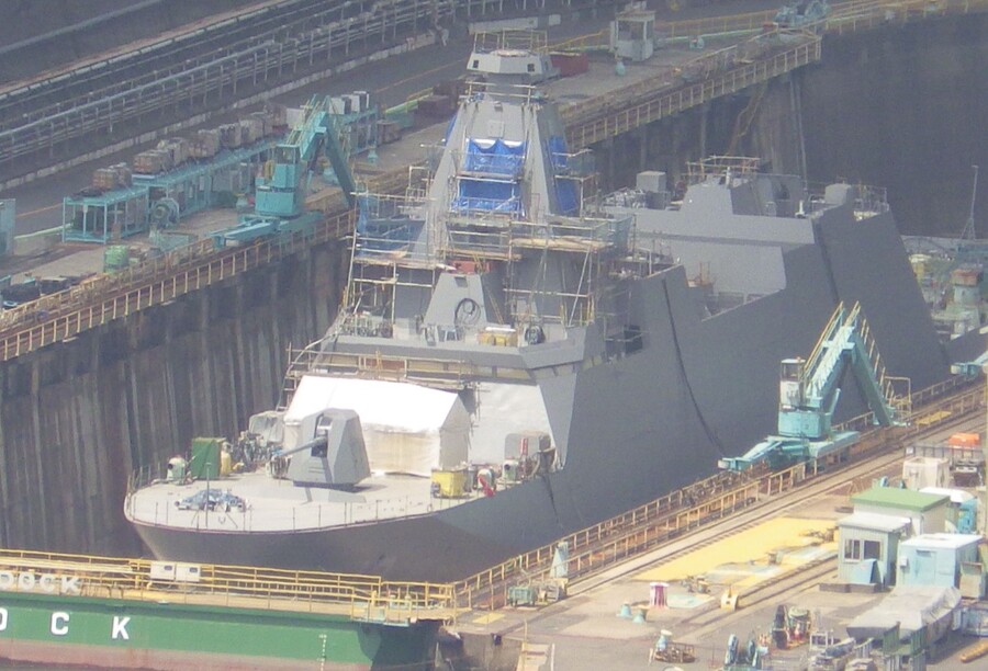 海自の「見た目カクカクな護衛艦」 就役に向けた準備の様子を激写!! 能力アップする“待望の装置”も搭載間近か?
