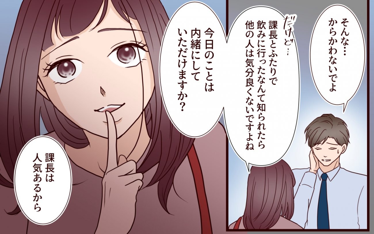 部下との食事、口止めされた約束…それらは妻を試すための行動だったのでしょうか。それとも、夫側が部下の罠にはまっていたのでしょうか…。