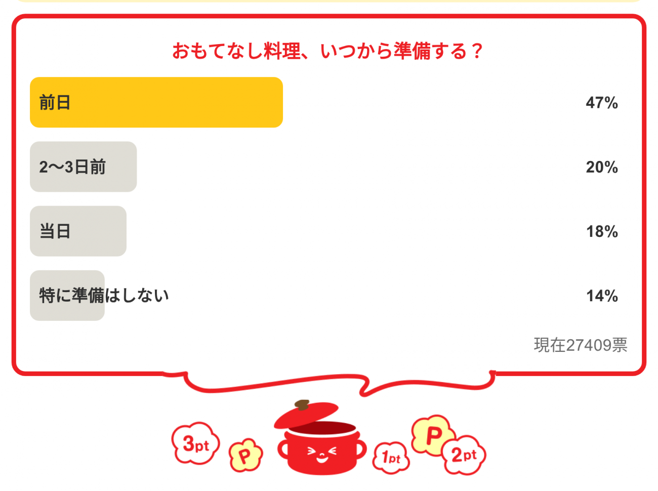 ・「おもてなし料理、いつから準備する?」の結果は…