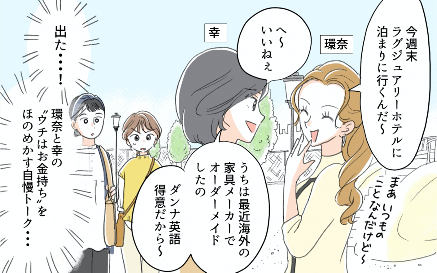 旦那自慢に始まり、バッグ、そしてついには指輪のブランドまで。ノーブランドの指輪を指摘された途端、マウントのターゲットにされてしまうなんて…。