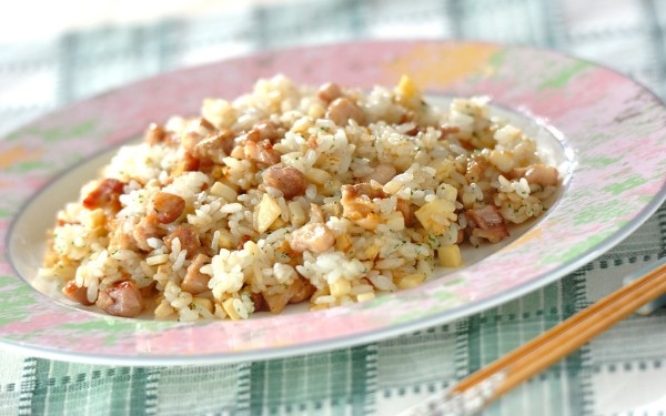 食感が美味「タケノコと鶏肉のニンニク炒飯」