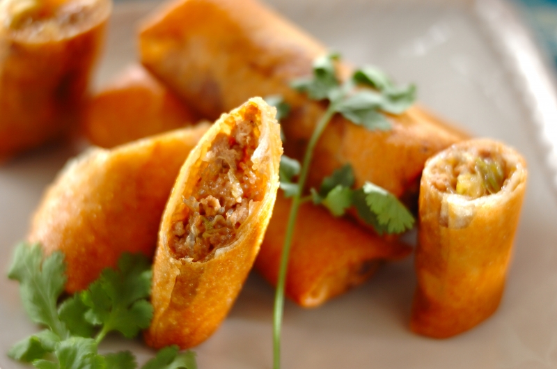 【主菜】豚ひき肉とキャベツの春巻き 節約おかずレシピ