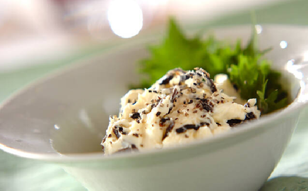 旨味たっぷりの塩昆布とクリームチーズは相性抜群! 大葉を添えれば、和風テイストのおつまみが完成です。クラッカーやトーストにのせるのはもちろん、角切りにしたトマトを和えても◎。多彩なアレンジが楽しめます。